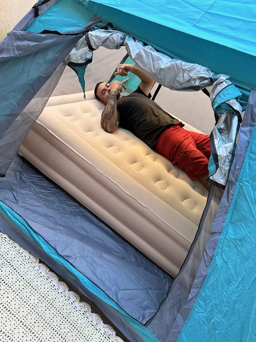 O colchão de ar infla em apenas 3 minutos com o toque de um botão. A